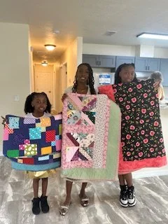 Many of the lead team have a background in scouting so we wanted to use our scraps and other resources wisely, be conservation minded by not sending fabriuc scraps to the landwill and make items that we can distribute in our communities. We sometimes receive donations of fabric that can be used for some of items, so we turn that fabric into animal beds, that are then filled with the tinest scraps. Larger pieces of cotton and flannel were lovingly made into quilts that were dionated to Grace Marketplace, a center for the homeless. More quilts and other projects followed quickly.